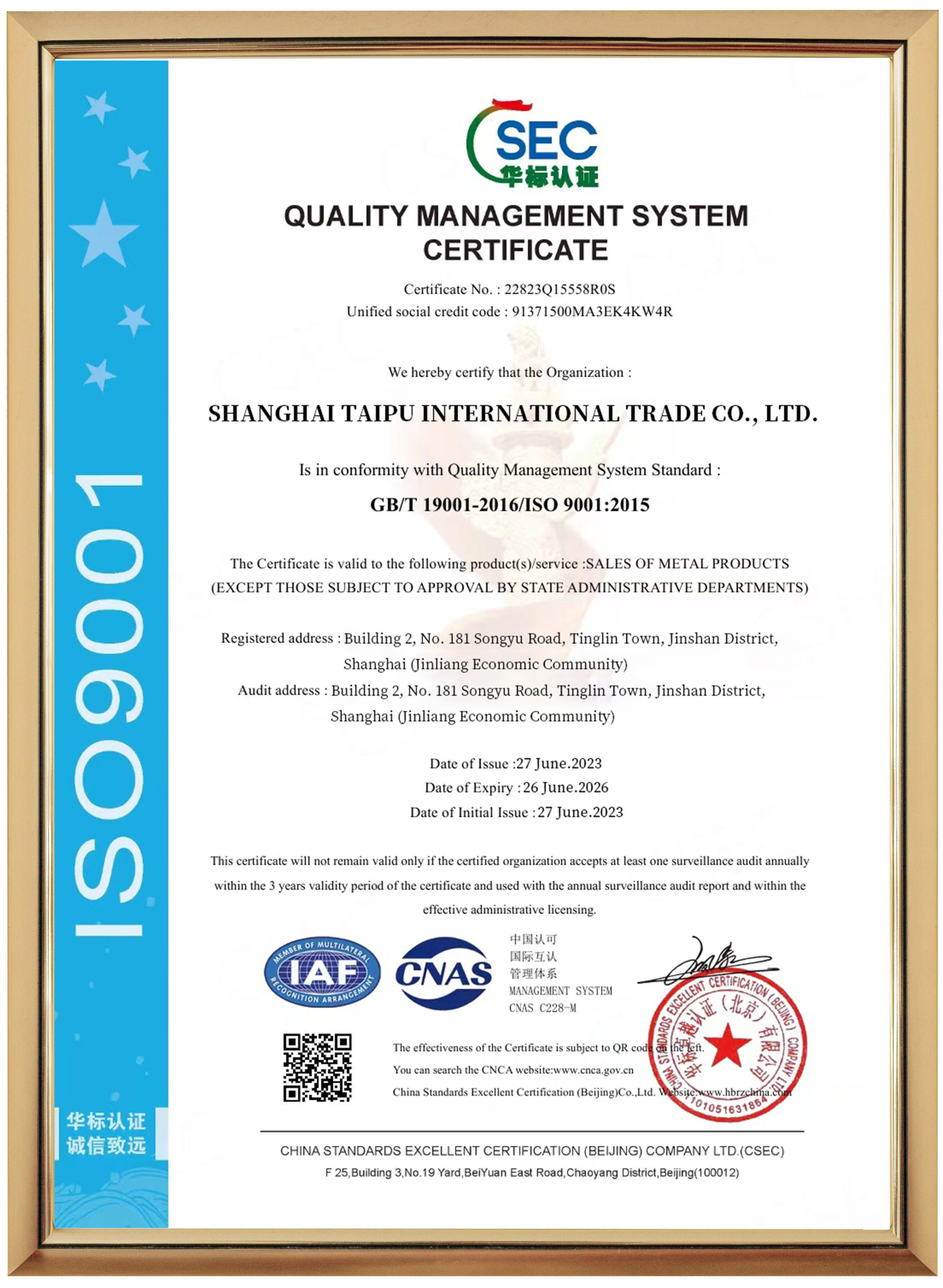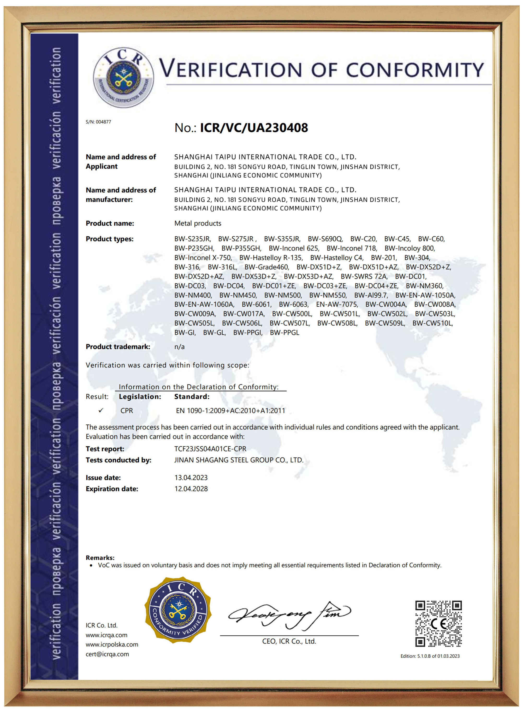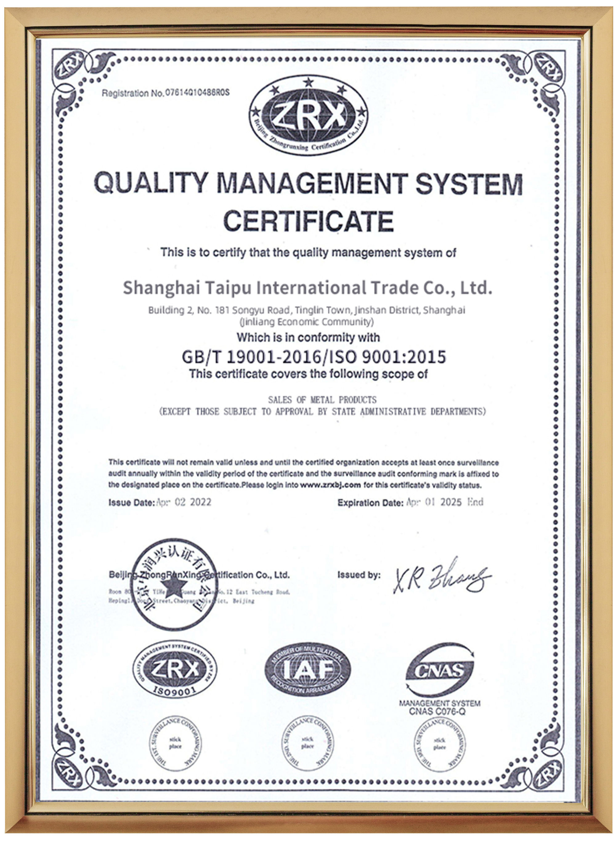 Shanghai Taipu Company incluye departamento comercial, financiero, de almacenamiento, de procesamiento y de transporte, que cuenta con camiones propios, grúas y corte automático y productos semiacabados.